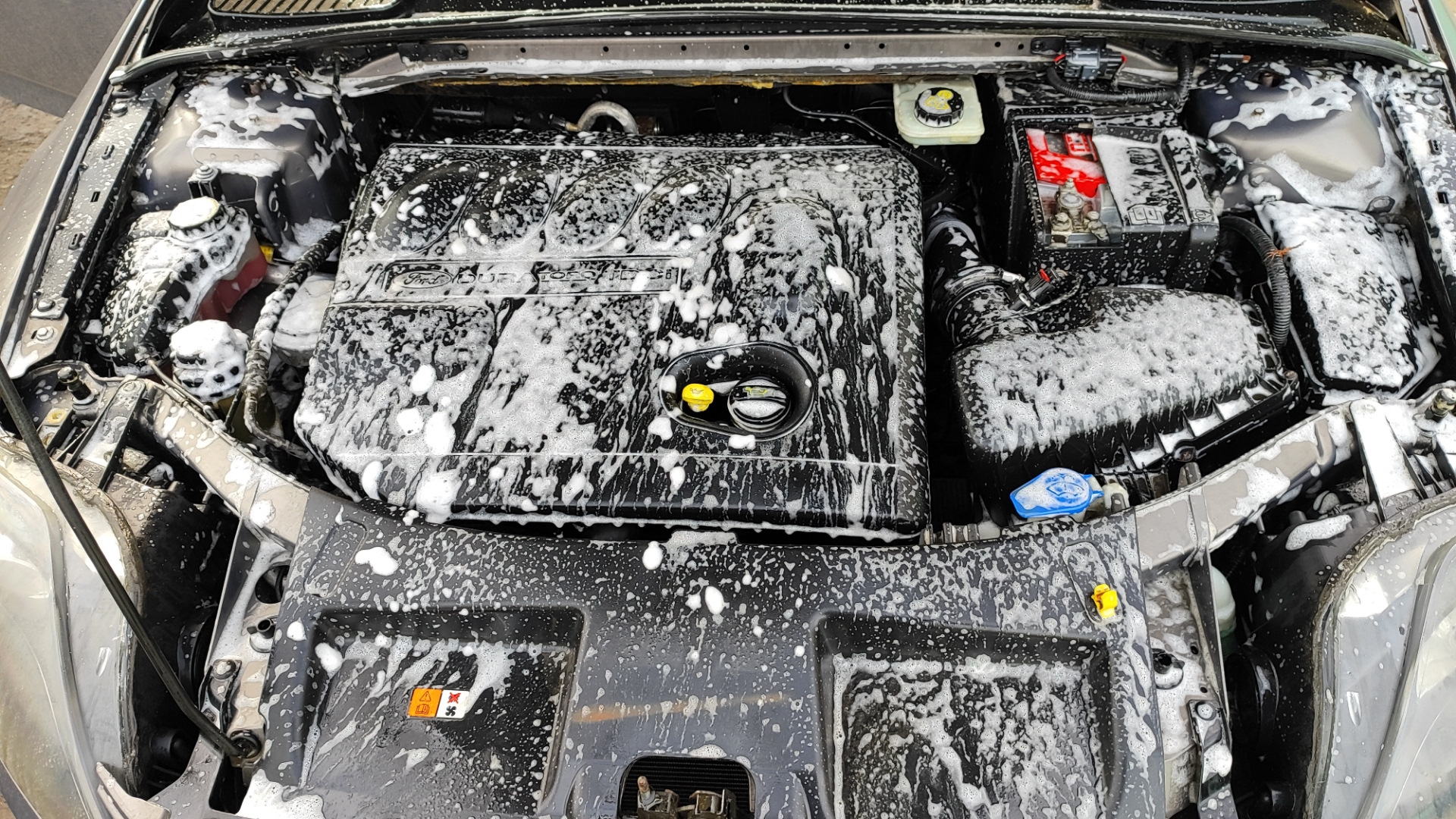 - Метод 2: Бесконтактная мойка мягкой пеной. Используется аппарат низкого давления, подающий специальную щелочную или нейтральную пену для двигателя. Пена растворяет загрязнения, после чего аккуратно смывается слабой струей воды.