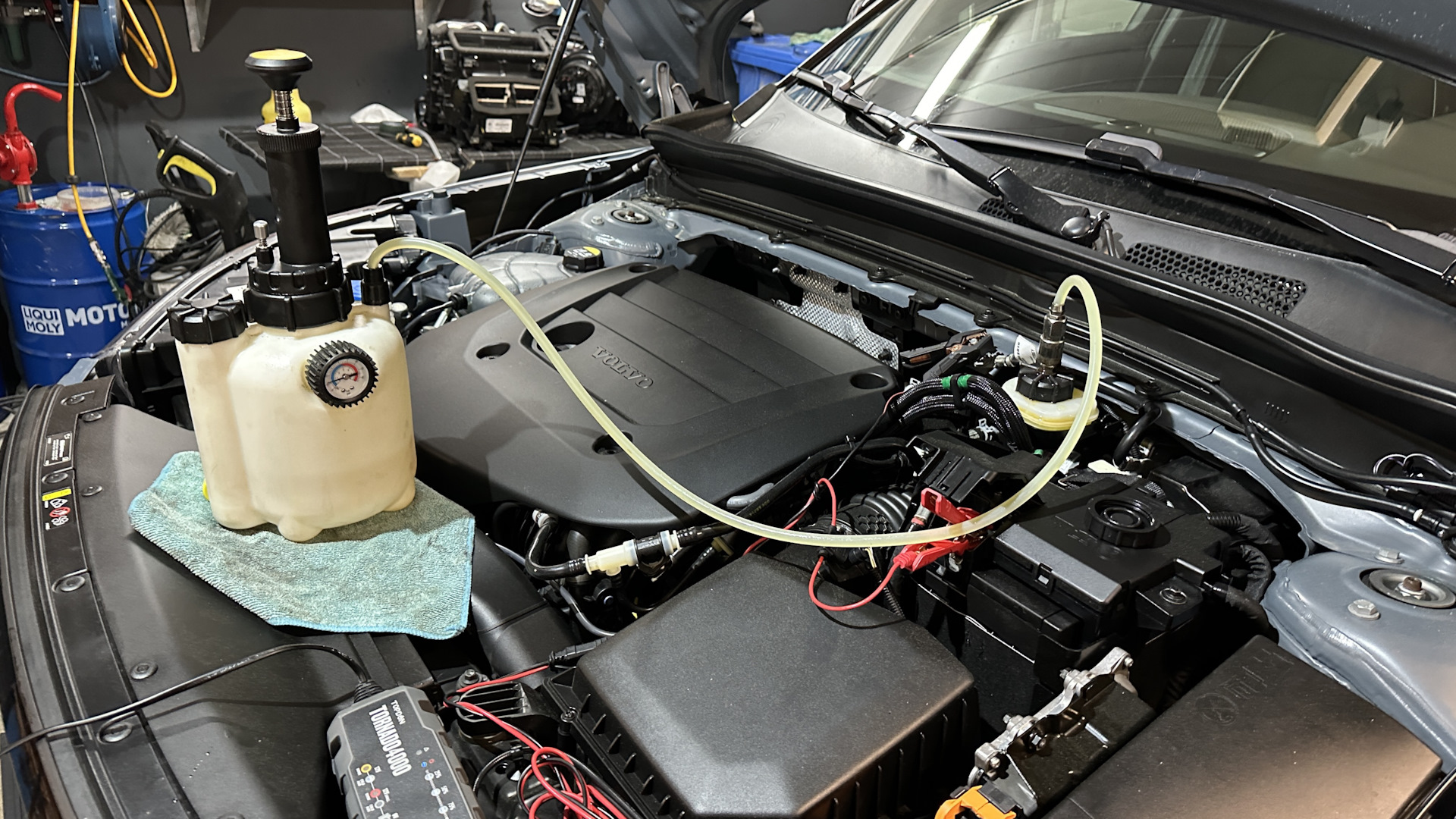 Откачка старой жидкости и промывка: